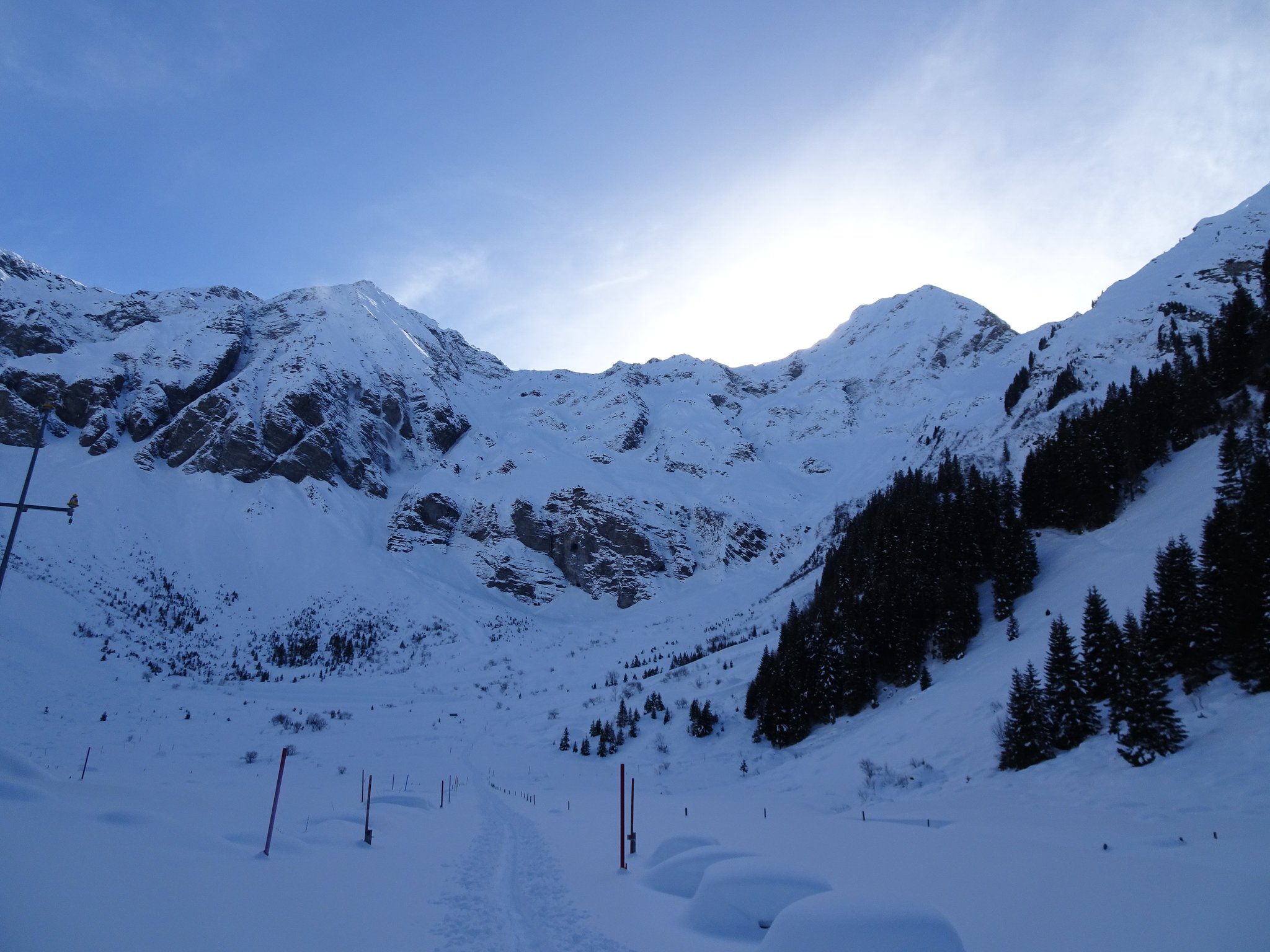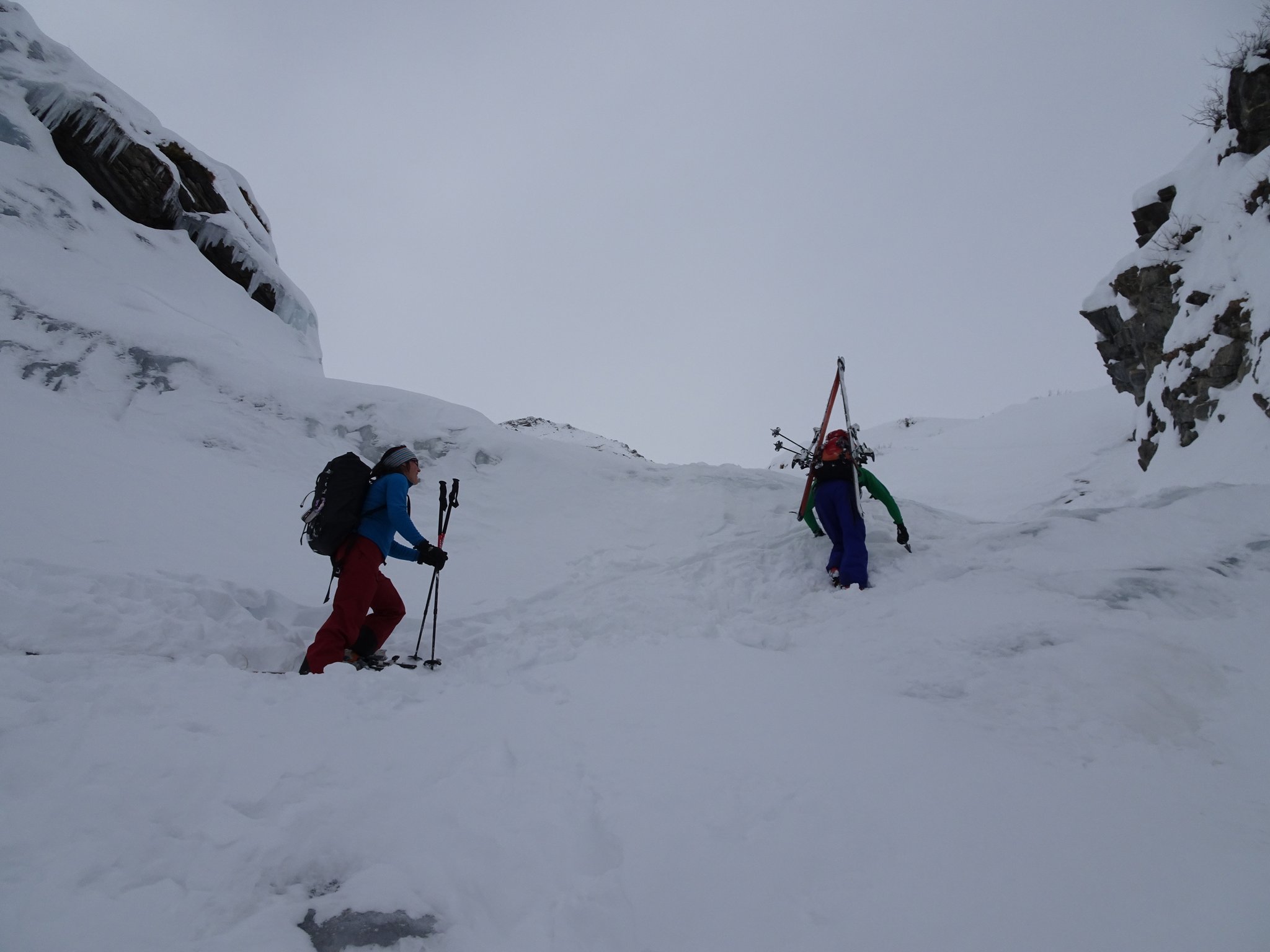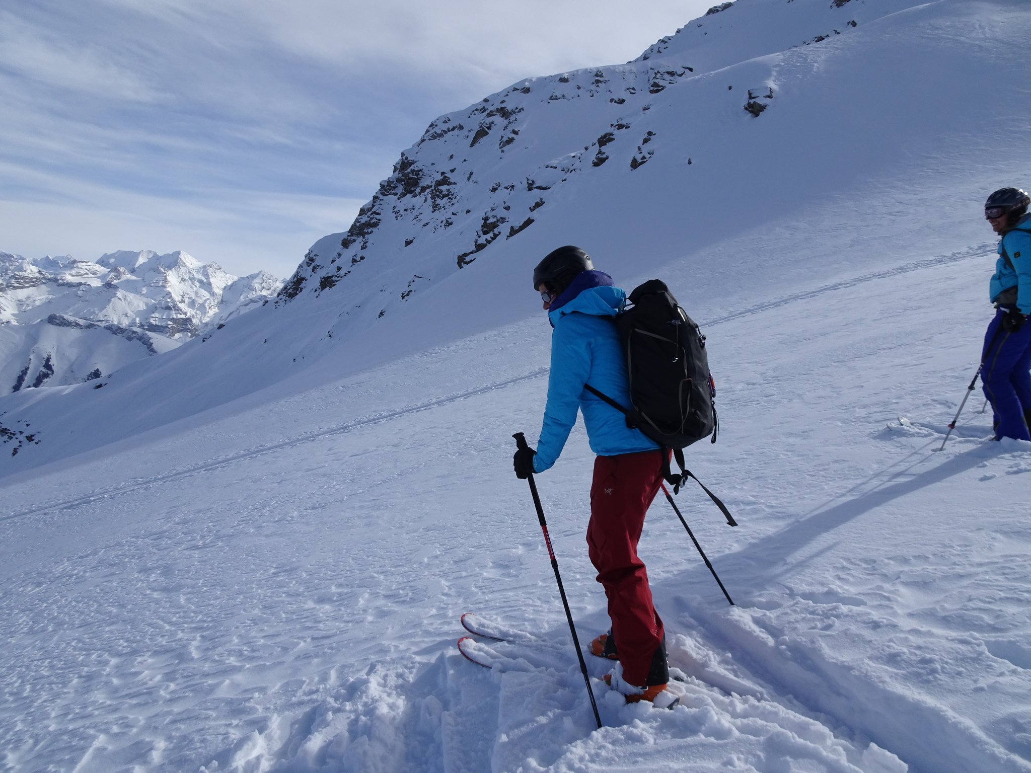 Die Wetterprognosen waren zu mild um den geplanten Aufstieg von der Südseite in Angriff zu nehmen. Deshalb wurde kurzerhand beschlossen von der Nordseite her zu starten. 4 Clübler nahmen die recht lange und ziemlich schwierige Skitour vom Chiru in Angriff. Die Schlüsselstelle beim Wasserfall konnte zu Fuss ohne grössere Schwierigkeiten gemeistert werden. Anschliessend ging es nur noch steil hoch bis zum Gipfel. Zum Glück wurde tags zuvor eine gute und recht steile Aufstiegsspur angelegt. Die anschliessende Abfahrt war ein Genuss. Powder pur und nur wenige Abfahrtspuren (ca. 7 Spuren). Unten im hintersten Chiru angekommen, wurde der Gipfelschnaps eingenommen. Auf dem Gipfel war es unangenehm windig und ein Teilnehmer konnte es kaum erwarten in den tiefen Pulver einzutauchen. Merci Küsel Füglistaller für die super Skitour!