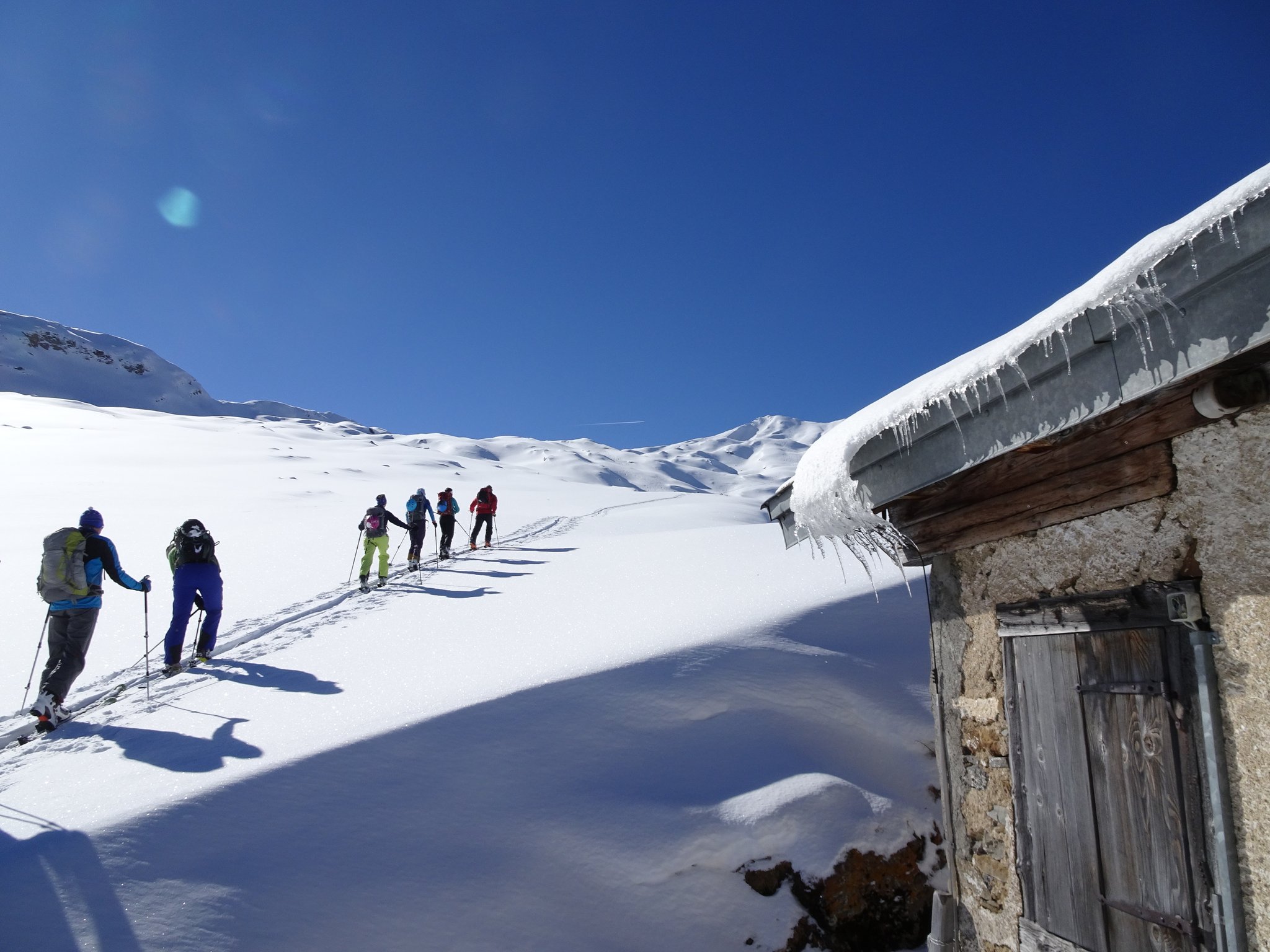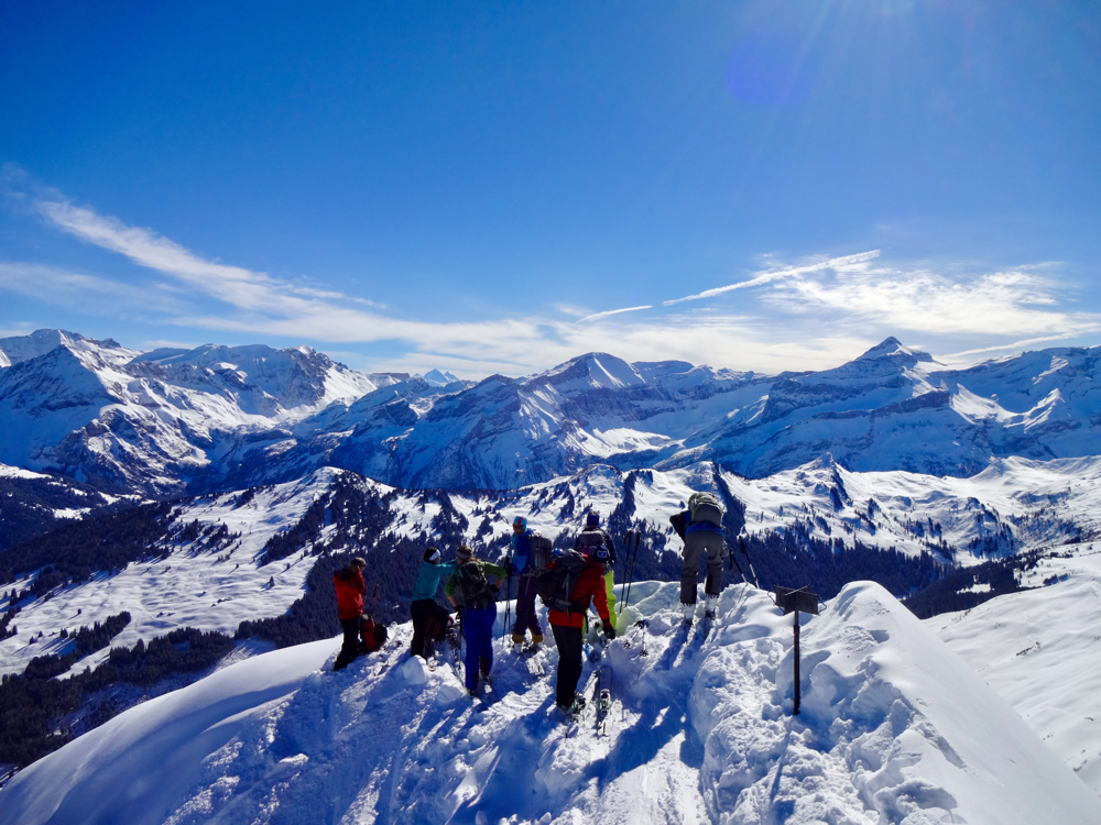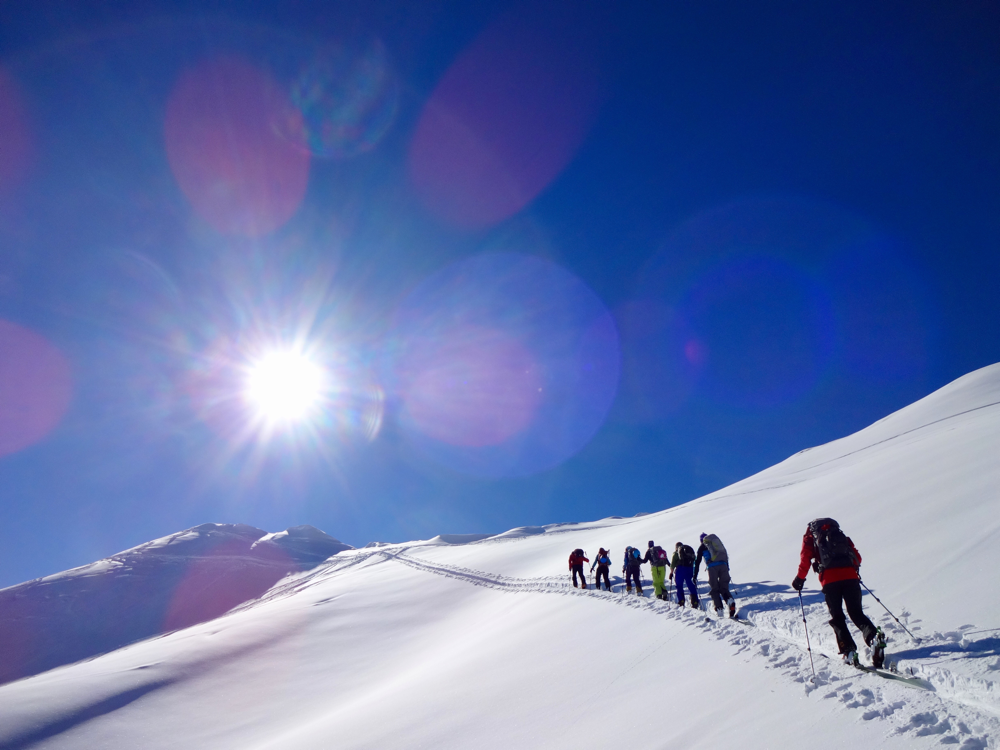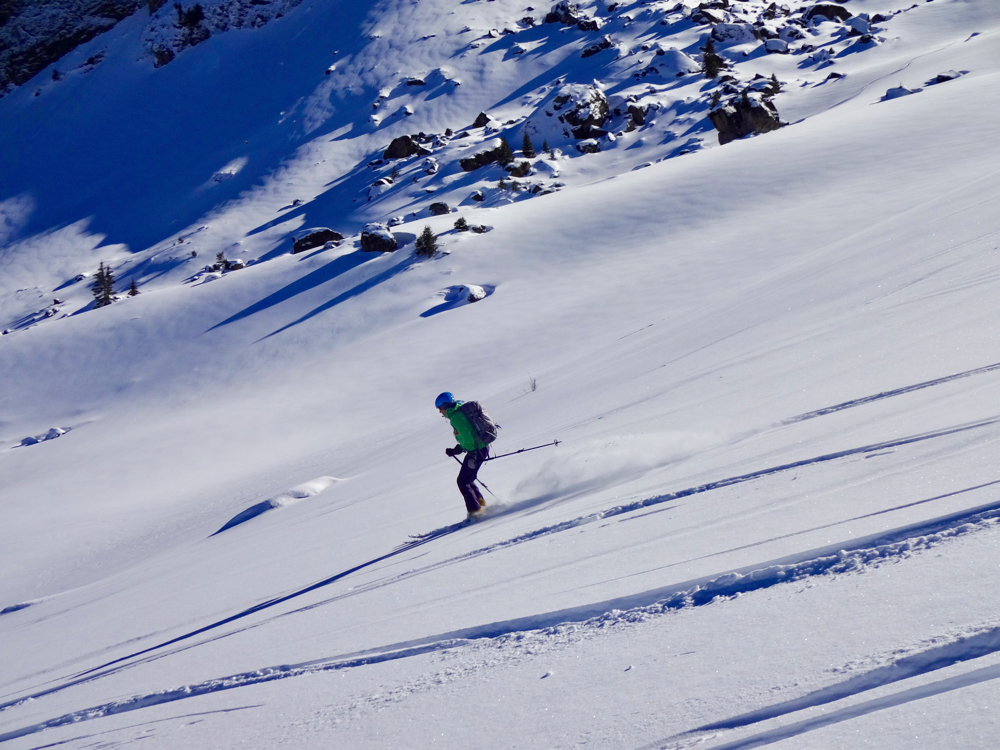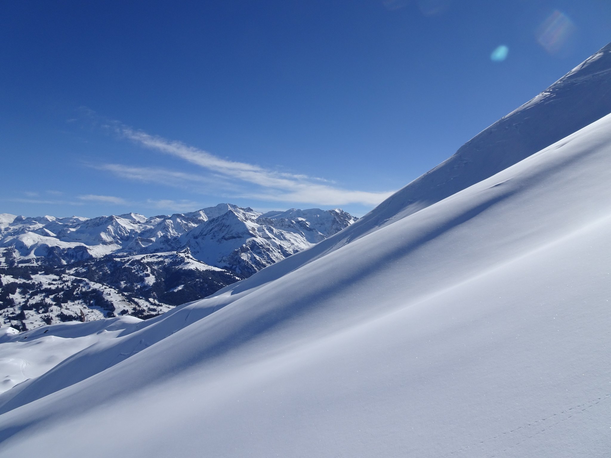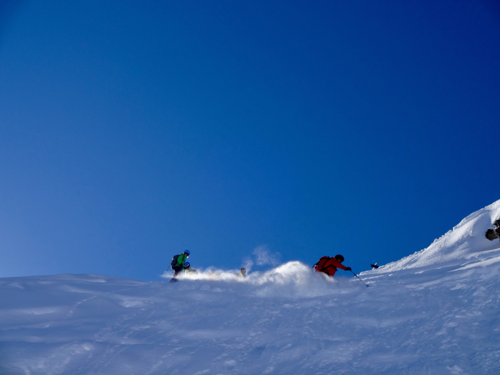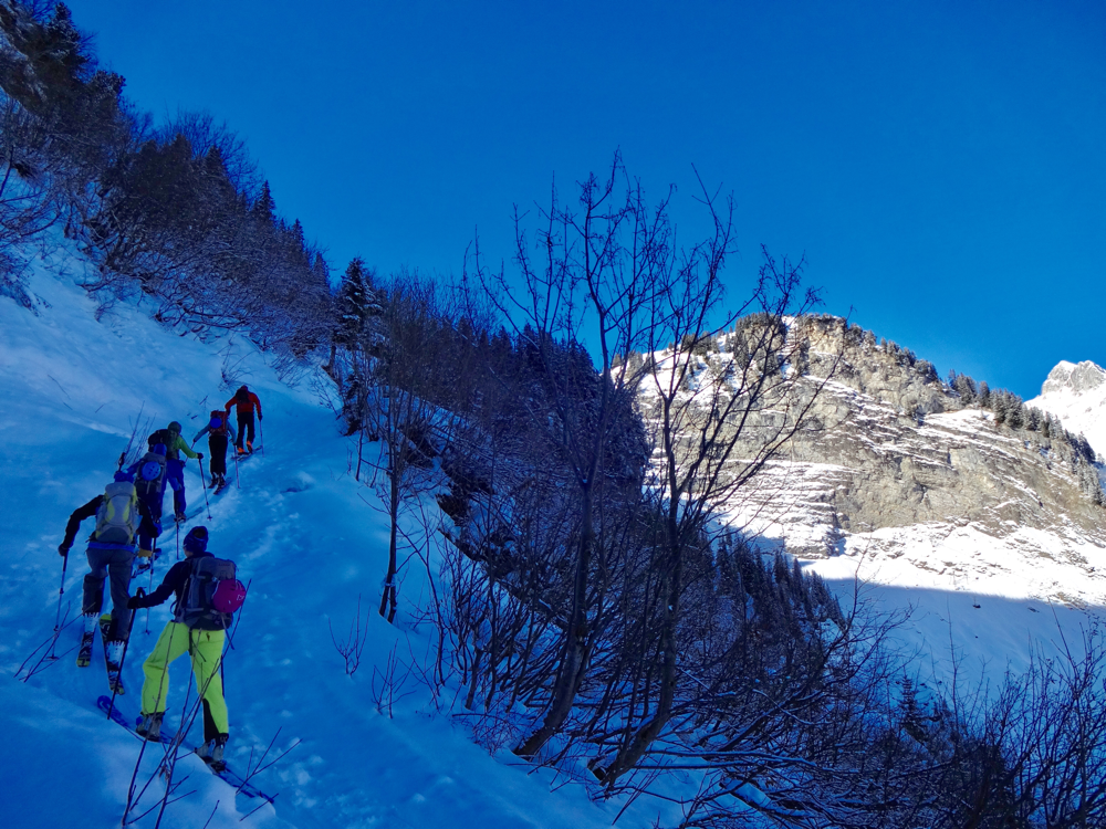 Die Meldung von Roli, die Teilnehmer sollten die Harscheisen nicht vergessen, liess uns ein paar Sorgenfalten auf die Stirn steigen. Sollte die Tour auf das Wittenberghorn - nachdem es im letzten Jahr zu viel Schnee für dieses Tourenziel hatte - wieder scheitern? Wir hofften alle das beste und liessen uns überraschen. Bereits um kurz vor neun ging es los auf einem Strässchen, immer weiter in ein kaltes schattiges Tal hinein. Kurz bevor es dann ruppig bergauf ging, an einem Ort mit dem schönen Namen "Unteres Meieli", spendete uns Roli noch ein Päuschen und liess besagte Harscheisen montieren. Allerdings waren alle Befürchtungen umsonst, denn der Sommerweg hinaus aus dem Tal, hoch auf die Alp "Obere Meiel" war gut gespurt und hatte über Nacht etwas Neuschnee bekommen. Eins zu Null für die Fritschi Harscheisenhochklapper und Dynafit Befehlsverweigerer. Auf der Alp angekommen, lachte uns endlich die berbeigesehnte Sonne an. Wow, war das schön, da musste gleich Pause zwei her um darauf anzustossen! Vor uns lag nun der Schlussaufstieg zum Wittenberghorn in einem praktisch unverfahrenen Gelände. Dieser Ort scheint entweder ein Insidertip zu sein, oder der Sommerweg zeigt sich nur selten von seiner guten Seite und schreckt so viele Tüüreler ab. Wir wissen es nicht. Vielleicht hat Roli auch irgendwo beim Aufstieg nach uns ein Verbotsschild montiert? Jedenfalls war das Gebiet, verglichen mit dem Diemtigtal, fast menschenleer. Bald erreichten wir den Gipfel wo wir uns relativ speditiv abfahrtsbereit machten. Einem Ski ging dies aber immer noch zu langsam und so machte sich dieser ohne seinen Fahrer auf die Socken. Zum Glück blieb er dann kurze Zeit später etwas weiter unten wieder liegen und so konnte der glücklose Pilot zügig wieder zwei Skier anziehen. Die Abfahrt war dann erste Sahne mit super Pulver und unverfahrenen Hängen. So macht es Spass! Wir cruisten zügig wieder zur Alphütte zurück, gönnten uns den hochgeschleppten Imbiss und zischten Susles Schnaps weg. Küsus edler Tropfen musste bereits auf dem Gipfel dran glauben. Soviel Zeit muss dann schon sein auf dem Gipfel - Selfie und Schnäpsli! Nach der Mittagspause folgte dann noch die charakterbildende Abfahrt wieder hinunter ins kalte Tal wo wir hergekommen waren. Gut, Pow war das dort nicht mehr, aber sooo übel wars dann auch wieder nicht. Kurz vor dem Auto ging uns noch beinahe der Schnee aus weil es so warm wurde. Alles in allem war das ein ganz toller Tag mit einer Hammertour. Besten Dank Roli! Bis zum Nordend dann... ;-)