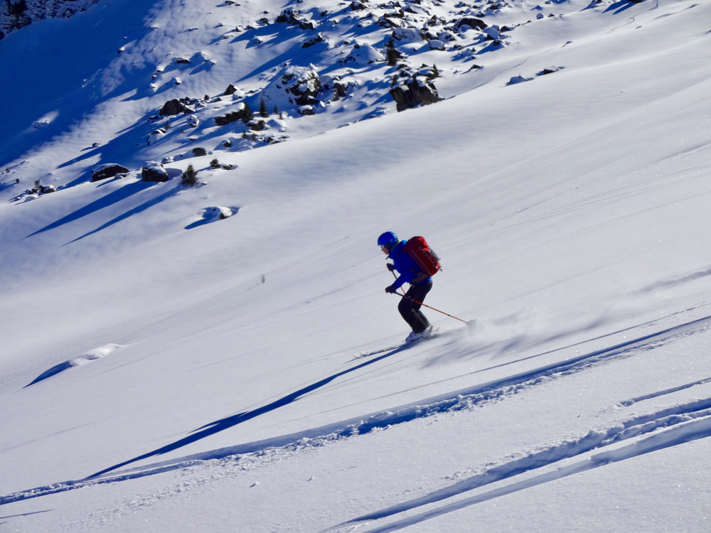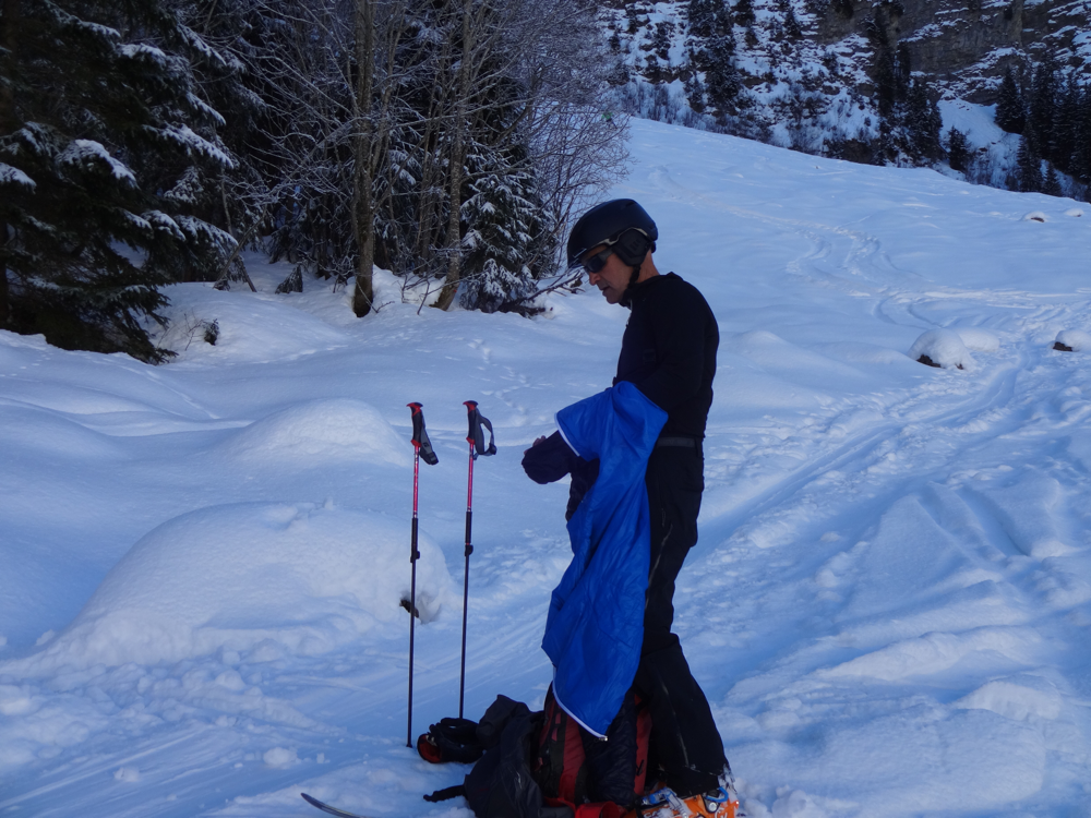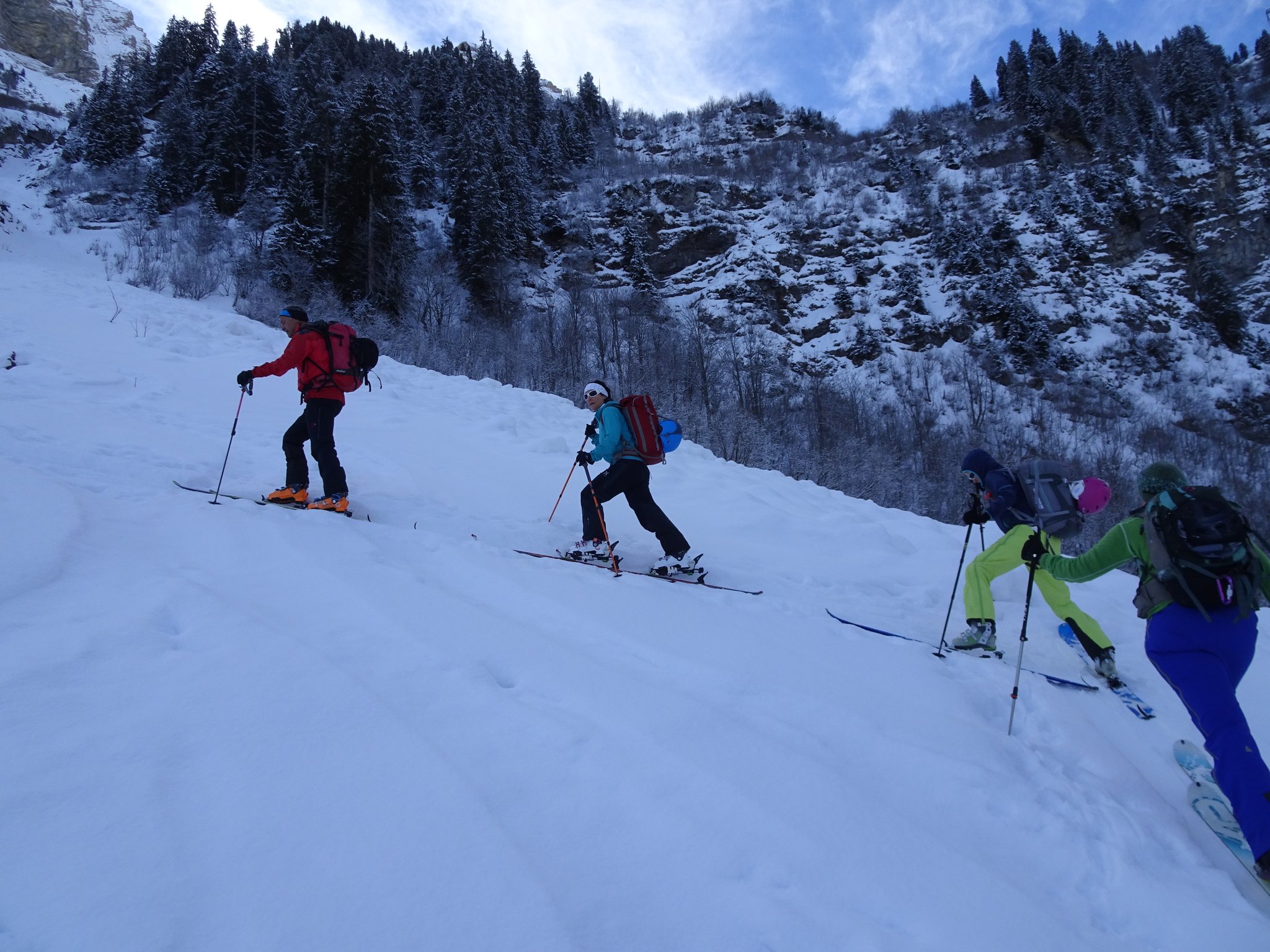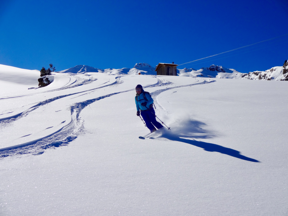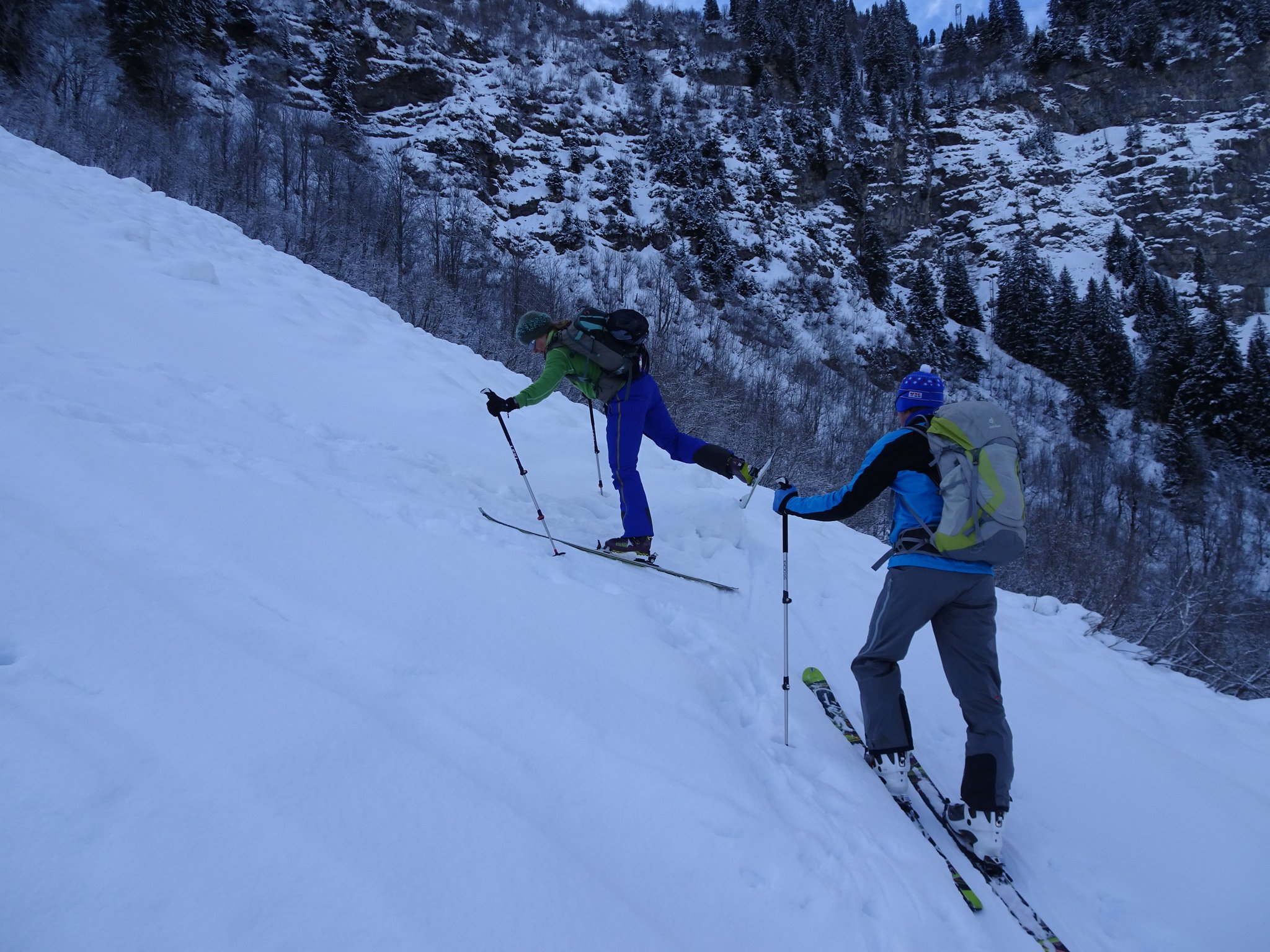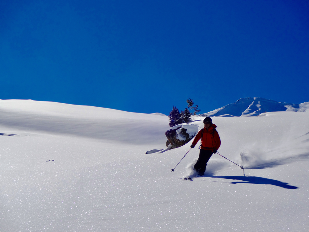 Die Meldung von Roli, die Teilnehmer sollten die Harscheisen nicht vergessen, liess uns ein paar Sorgenfalten auf die Stirn steigen. Sollte die Tour auf das Wittenberghorn - nachdem es im letzten Jahr zu viel Schnee für dieses Tourenziel hatte - wieder scheitern? Wir hofften alle das beste und liessen uns überraschen. Bereits um kurz vor neun ging es los auf einem Strässchen, immer weiter in ein kaltes schattiges Tal hinein. Kurz bevor es dann ruppig bergauf ging, an einem Ort mit dem schönen Namen "Unteres Meieli", spendete uns Roli noch ein Päuschen und liess besagte Harscheisen montieren. Allerdings waren alle Befürchtungen umsonst, denn der Sommerweg hinaus aus dem Tal, hoch auf die Alp "Obere Meiel" war gut gespurt und hatte über Nacht etwas Neuschnee bekommen. Eins zu Null für die Fritschi Harscheisenhochklapper und Dynafit Befehlsverweigerer. Auf der Alp angekommen, lachte uns endlich die berbeigesehnte Sonne an. Wow, war das schön, da musste gleich Pause zwei her um darauf anzustossen! Vor uns lag nun der Schlussaufstieg zum Wittenberghorn in einem praktisch unverfahrenen Gelände. Dieser Ort scheint entweder ein Insidertip zu sein, oder der Sommerweg zeigt sich nur selten von seiner guten Seite und schreckt so viele Tüüreler ab. Wir wissen es nicht. Vielleicht hat Roli auch irgendwo beim Aufstieg nach uns ein Verbotsschild montiert? Jedenfalls war das Gebiet, verglichen mit dem Diemtigtal, fast menschenleer. Bald erreichten wir den Gipfel wo wir uns relativ speditiv abfahrtsbereit machten. Einem Ski ging dies aber immer noch zu langsam und so machte sich dieser ohne seinen Fahrer auf die Socken. Zum Glück blieb er dann kurze Zeit später etwas weiter unten wieder liegen und so konnte der glücklose Pilot zügig wieder zwei Skier anziehen. Die Abfahrt war dann erste Sahne mit super Pulver und unverfahrenen Hängen. So macht es Spass! Wir cruisten zügig wieder zur Alphütte zurück, gönnten uns den hochgeschleppten Imbiss und zischten Susles Schnaps weg. Küsus edler Tropfen musste bereits auf dem Gipfel dran glauben. Soviel Zeit muss dann schon sein auf dem Gipfel - Selfie und Schnäpsli! Nach der Mittagspause folgte dann noch die charakterbildende Abfahrt wieder hinunter ins kalte Tal wo wir hergekommen waren. Gut, Pow war das dort nicht mehr, aber sooo übel wars dann auch wieder nicht. Kurz vor dem Auto ging uns noch beinahe der Schnee aus weil es so warm wurde. Alles in allem war das ein ganz toller Tag mit einer Hammertour. Besten Dank Roli! Bis zum Nordend dann... ;-)