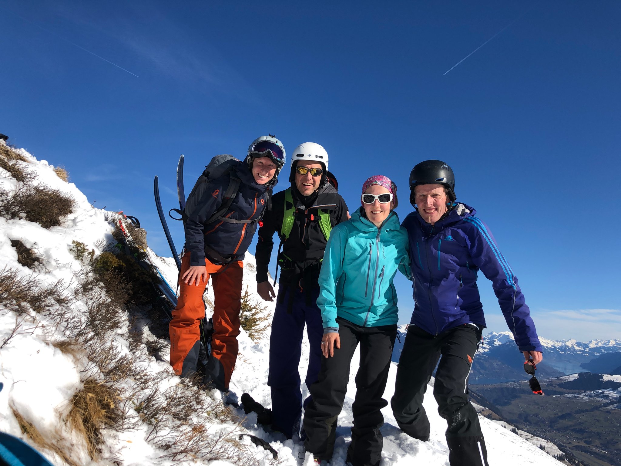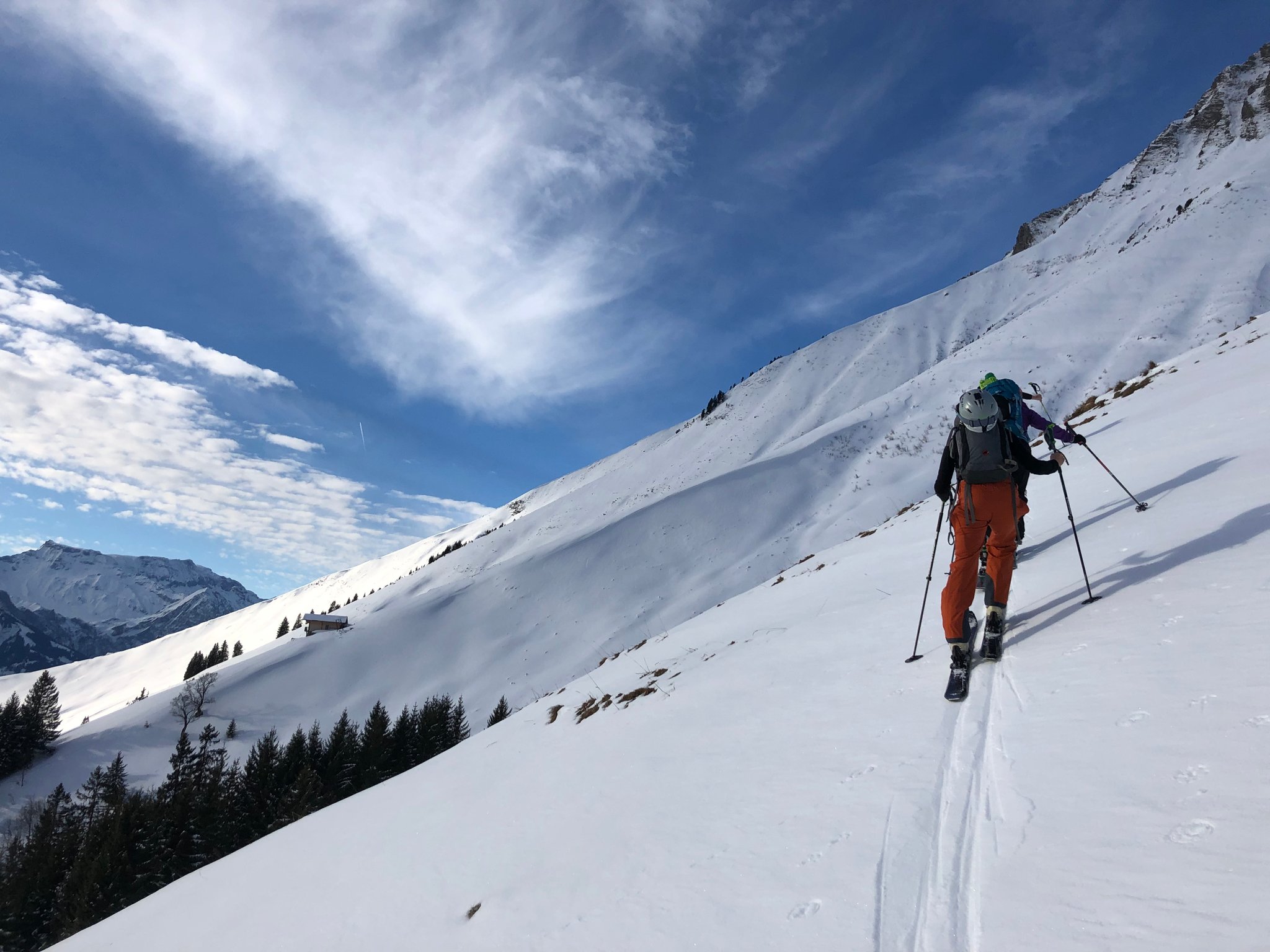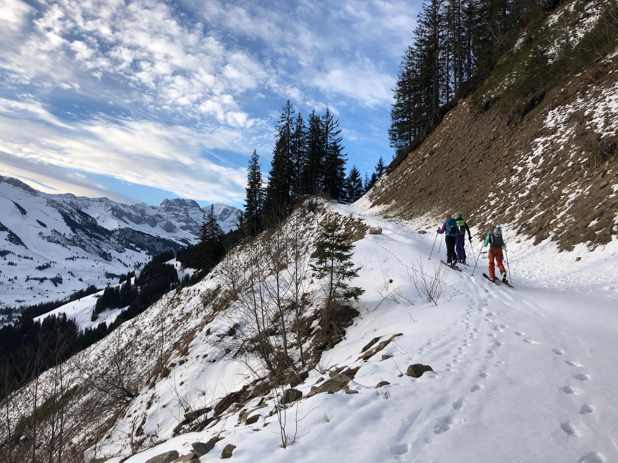 Die Verhältnisse am Albristhorn Westseite waren nicht gerade einladend....so haben wir eine kleine Alternative gesucht. Zuerst per Auto sehr weit nach oben fahren.. und dann auf dem restlichen Neuschnee und im oberen Teil auf der teilweise steinigen Strasse zu einer namenlosen Spisse aufsteigen. Dieser Aufstieg musste verdient werden, denn im nächsten Teil kam dann noch die frühlingshafte Wärme dazu. Oben angekommen konnten wir bei warmen Temperaturen die Aussicht geniessen. Bei der Abfahrt genossen wir doch noch ein Paar Schwünge im Pulverschnee. Und weiter unten reichte der Neuschnee gerade noch bis zum Auto..Schön siter mitcho!
