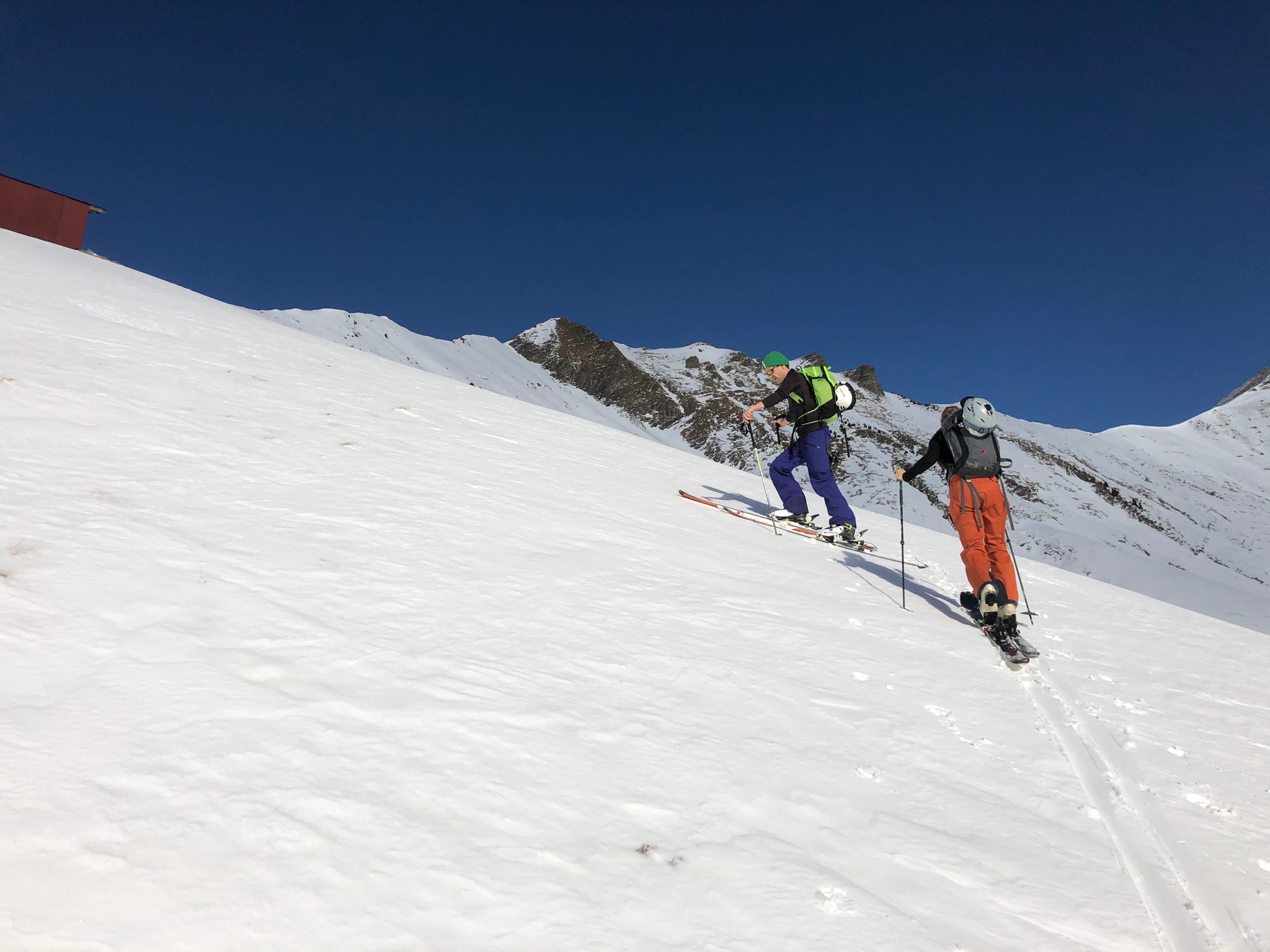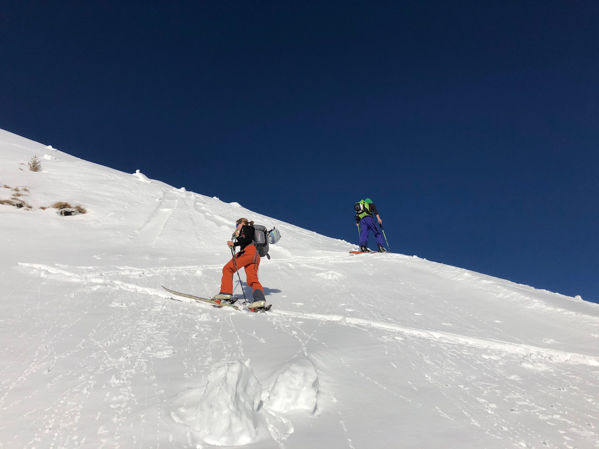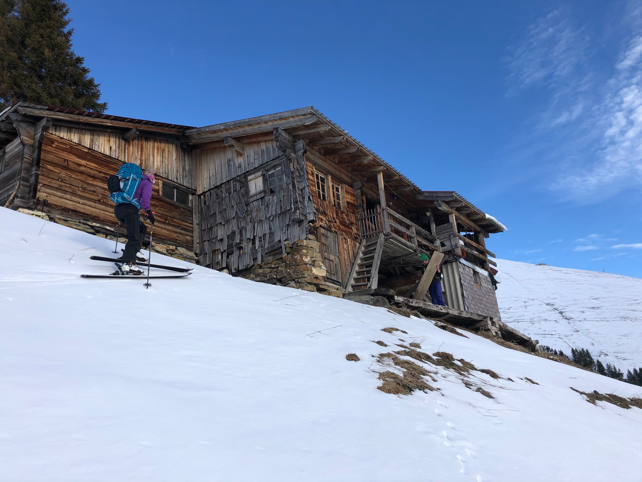 Die Verhältnisse am Albristhorn Westseite waren nicht gerade einladend....so haben wir eine kleine Alternative gesucht. Zuerst per Auto sehr weit nach oben fahren.. und dann auf dem restlichen Neuschnee und im oberen Teil auf der teilweise steinigen Strasse zu einer namenlosen Spisse aufsteigen. Dieser Aufstieg musste verdient werden, denn im nächsten Teil kam dann noch die frühlingshafte Wärme dazu. Oben angekommen konnten wir bei warmen Temperaturen die Aussicht geniessen. Bei der Abfahrt genossen wir doch noch ein Paar Schwünge im Pulverschnee. Und weiter unten reichte der Neuschnee gerade noch bis zum Auto..Schön siter mitcho!