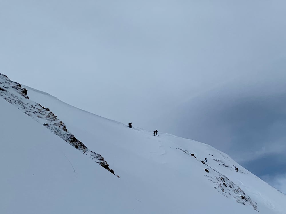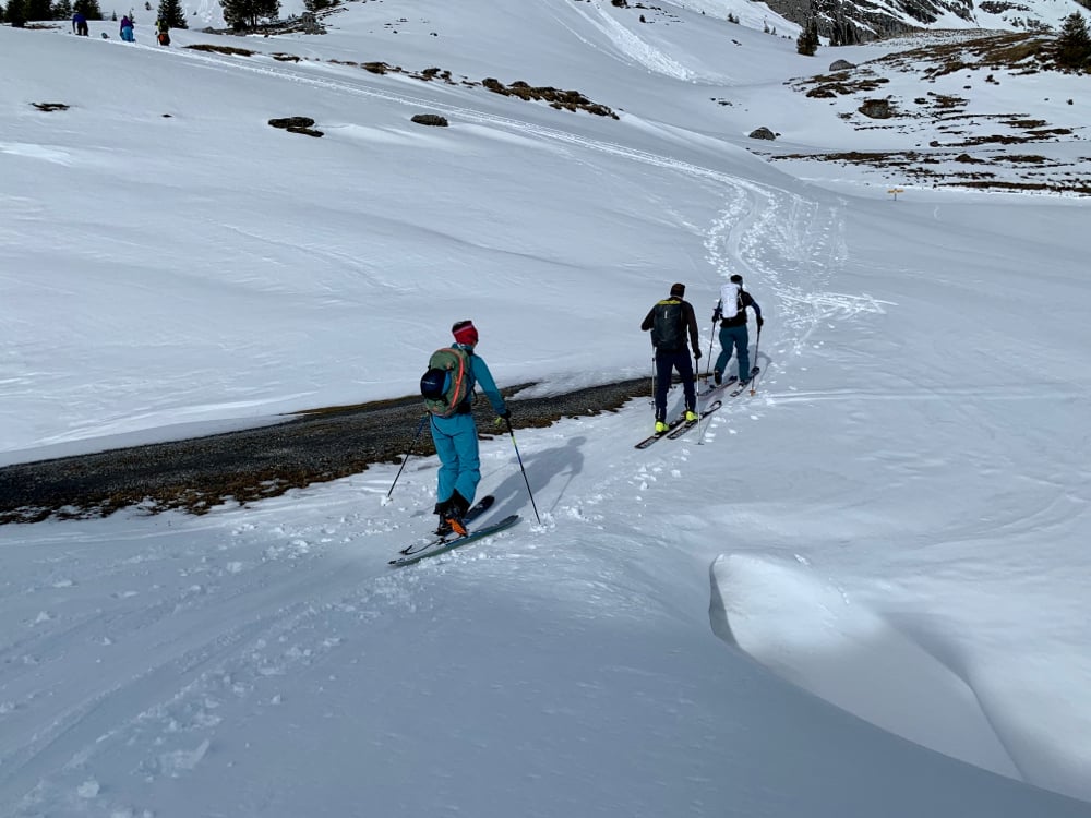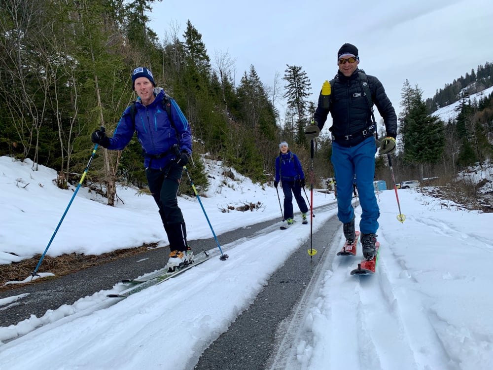 Obwohl es am Donnerstag noch ganz ordentlich Schnee gab und der Tourenleiter bei Schneeschaufeln schon ganz aus dem Häuschen war, kam die Ernüchterung mit dem Regen. In Kombination mit dem Wind und den warmen Temperaturen standen grosse Fragenzeichen im Vordergrund...