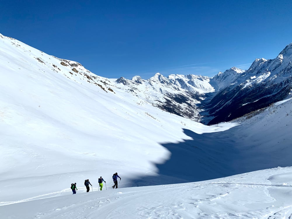 Roli ist wohl der einzige Leiter im Skiclub, welcher es sich erlauben kann, nach der Rekotour vom letzten Dienstag trocken anzumerken, dass der Schnee für die Clubtour auf die Loicherspitza eigentlich nicht gut sei. Darauf würden bei den meisten Leitern die Teilnehmer wegschmelzen wie Vanilleeis an der Sonne. Nicht so bei Roli. Der füllt das Dutzend an Teilnehmern danach immer noch locker. Das liegt wohl daran, dass seine Touren immer spannend- und eben nicht einfach ein 0815 Gipfel sind. So war es auch heute, als es ins sonnige Lötschental ging.
