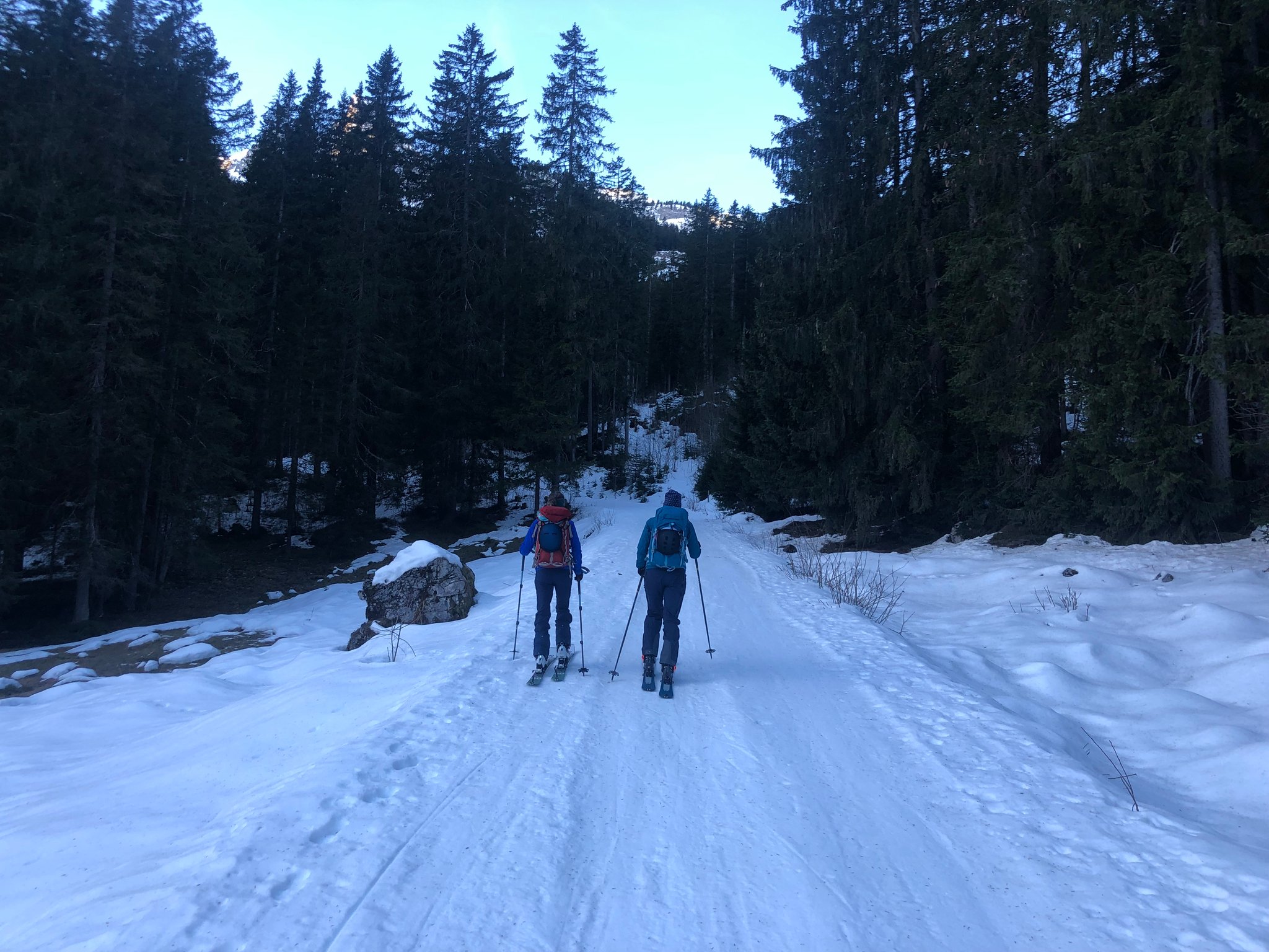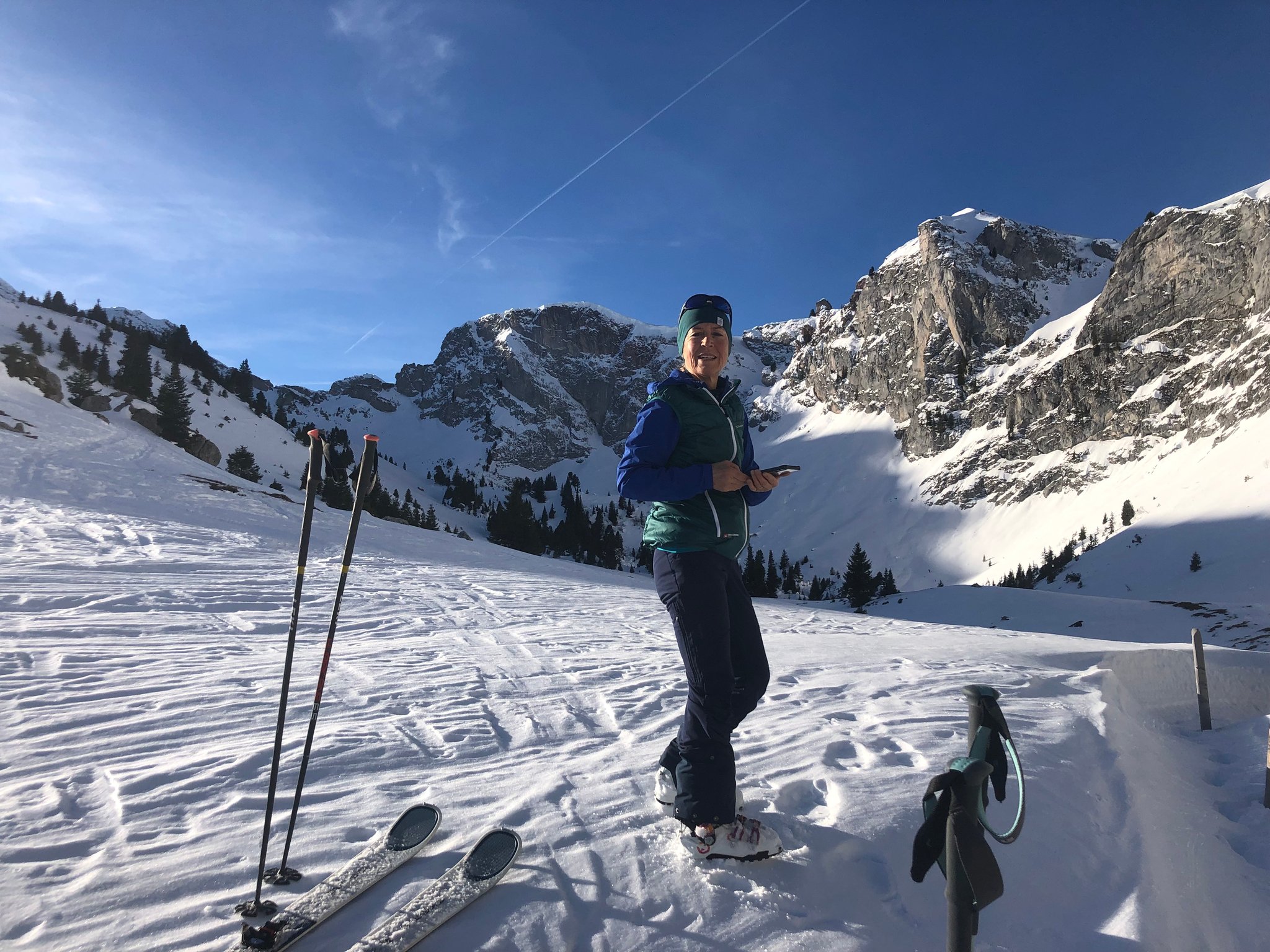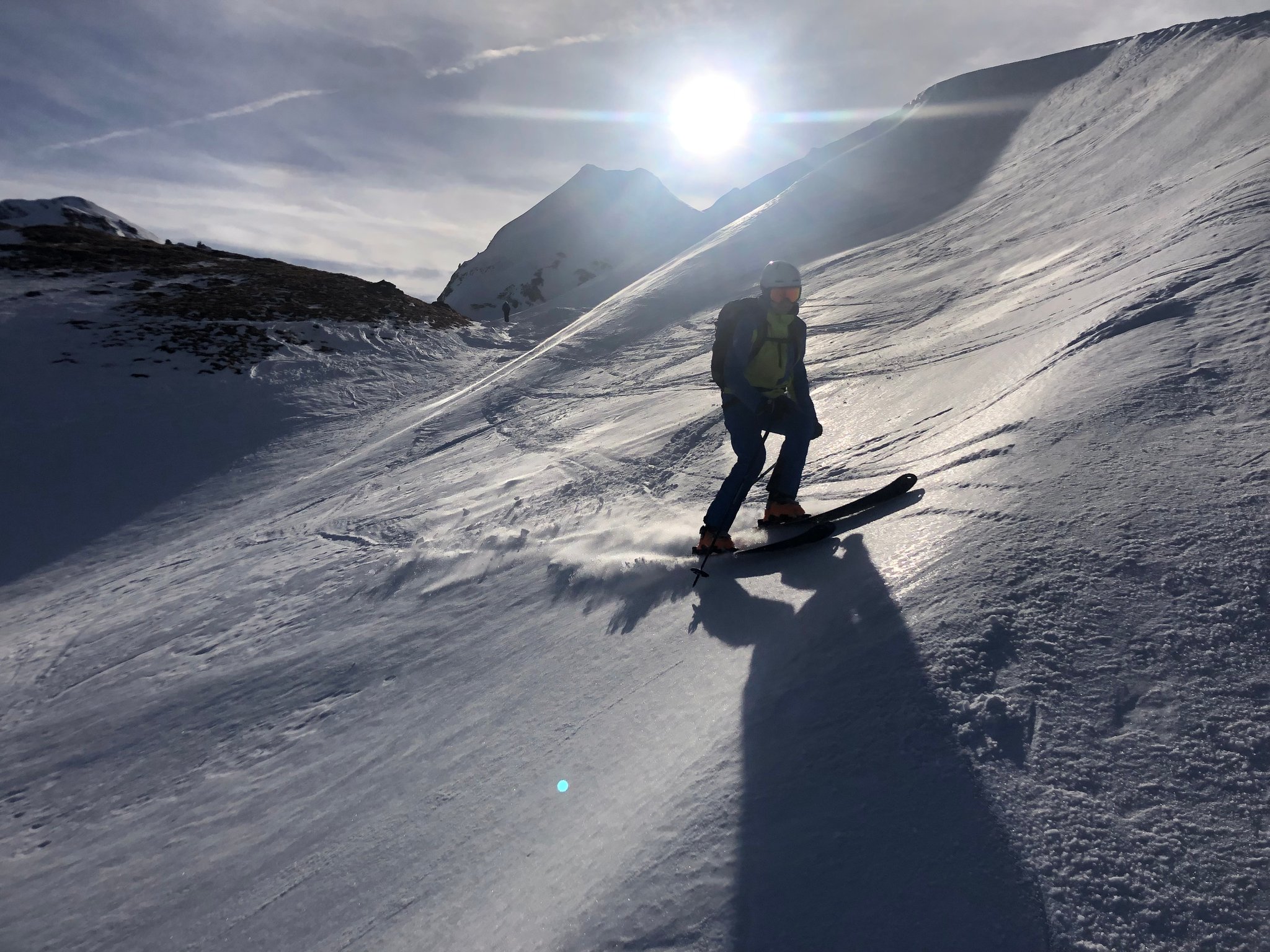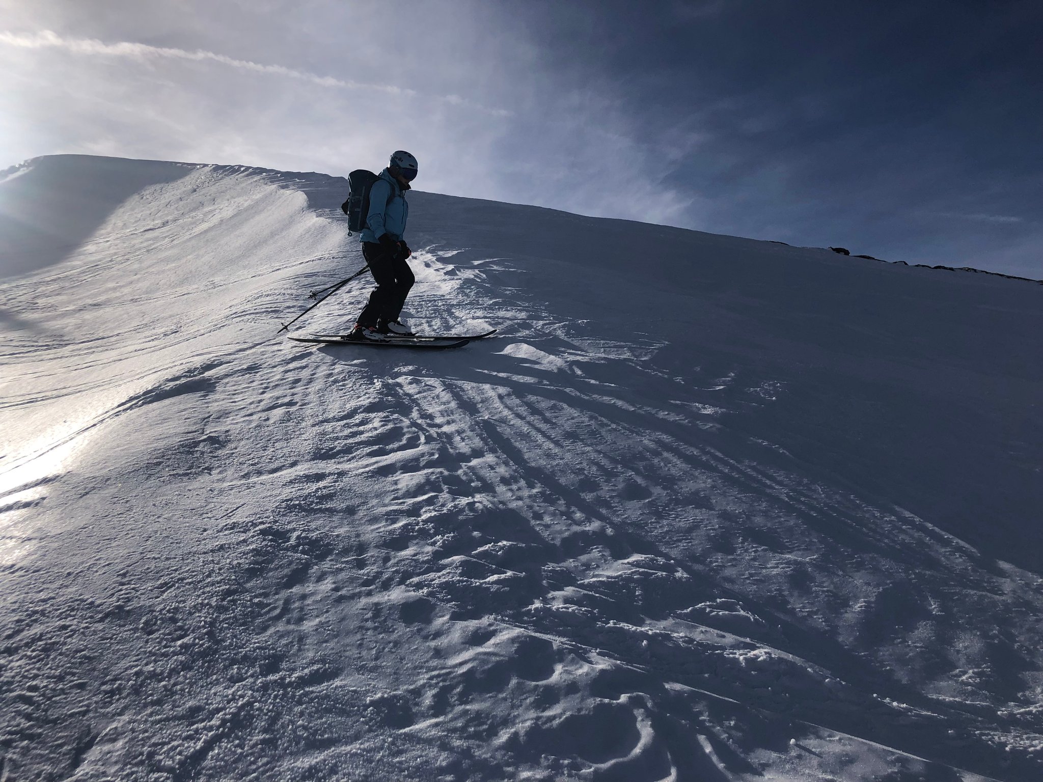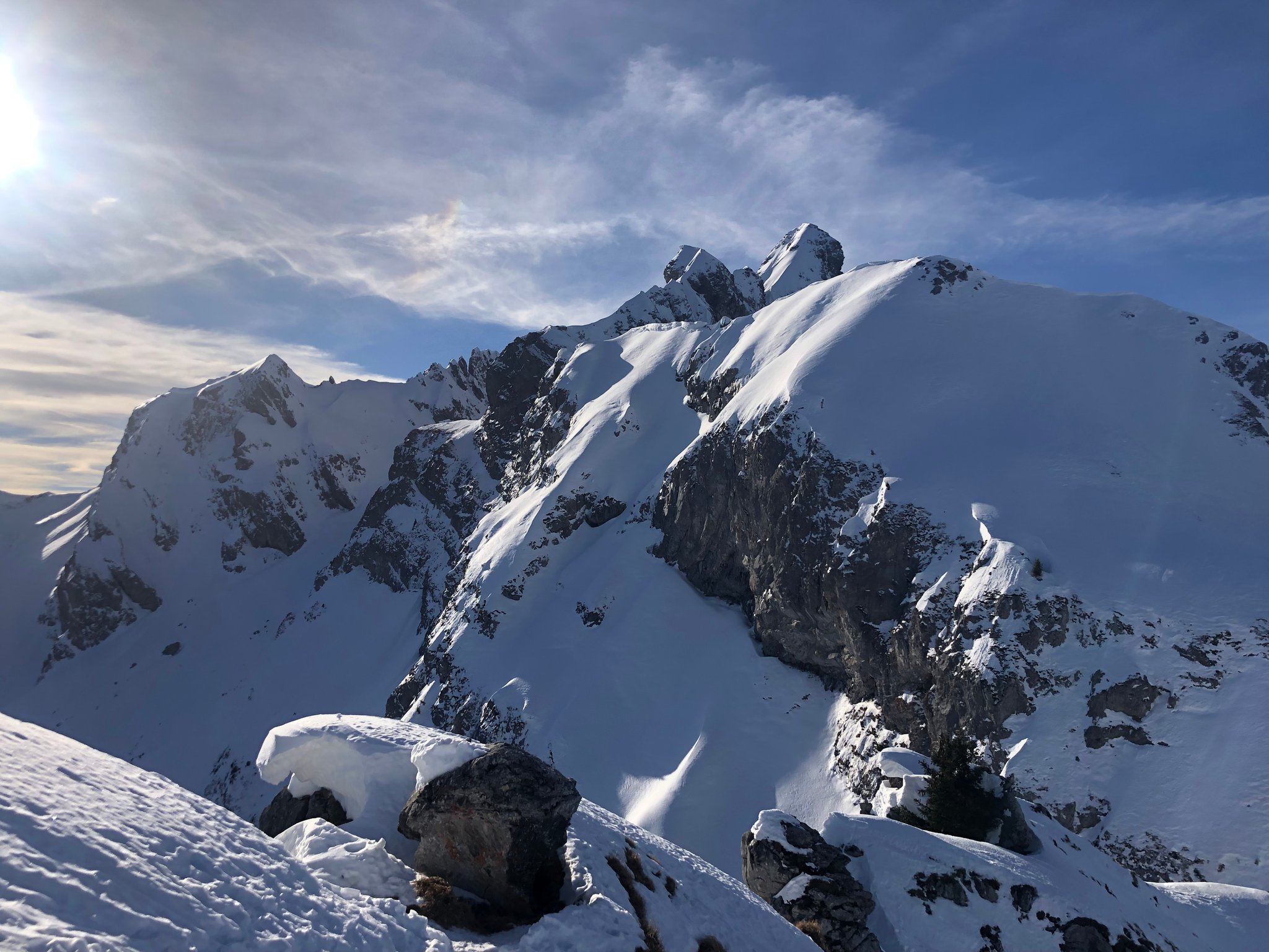 Es war wie fast immer, "besser als erwartet". Die Abfahrt bot viele verschiedene Schneearten. Plattenpulver, hartgefrorene Platten, pistartige Abschnitte, pulvriger Altschnee und sogar Sulz unterhalb vom Alpetli. Zum Teil konnten auch anständige Bögen gezogen werden. :-)